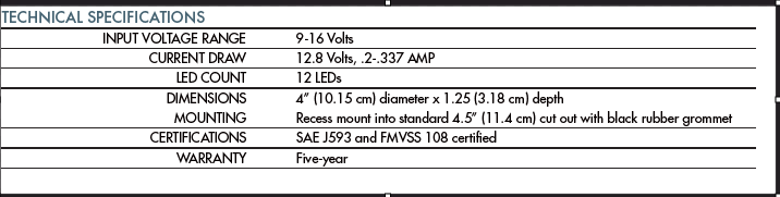 100RL0005, Opti-Luxx LED FA Series 4" Backup/Reverse Light with Flange